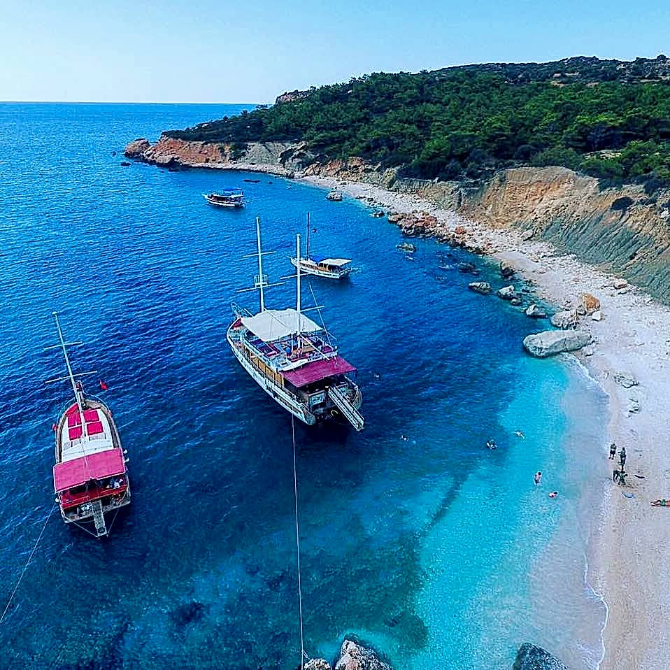 Kalkan günlük teknelerinin uğrak noktası olan Gerenlik Plajı (çamur banyosu) insanları doğal güzelliğiyle değil aynı zamanda killi toprağı ile büyülemektedir.